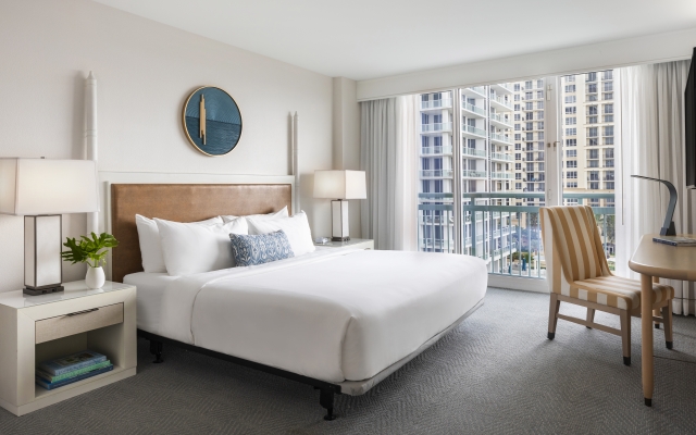 The ideal choice for a romantic retreat, our inviting Junior Suite will immerse you in a relaxed seaside sophistication. Breathtaking views of the Intracoastal Waterway greet you as you enter, accented by a palette of serene neutrals. Floor-to-ceiling windows open onto a spacious wrap-around balcony, inviting the outdoors in. An in-room mini-fridge, dedicated sitting area, and pull-out sofa let you enjoy many of the comforts of home, while our signature serenity bed creates a space for total relaxation.